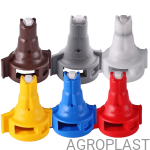 Las boquillas compactas Agroplast aseguran un montaje fácil y uso cómodo mientras se mantienen excelentes parámetros. El uso de una doble chorro de líquido generado a través de un inserto de cerámica, prácticamente elimina el peligro evitando incluso las áreas más pequeñas de pulverización, garantizando al mismo tiempo, seguridad de la planta. El uso de la inserción de circonio más puro garantiza una vida muy larga de la boquilla mientras manteniendo los parámetros de pulverización originales.
